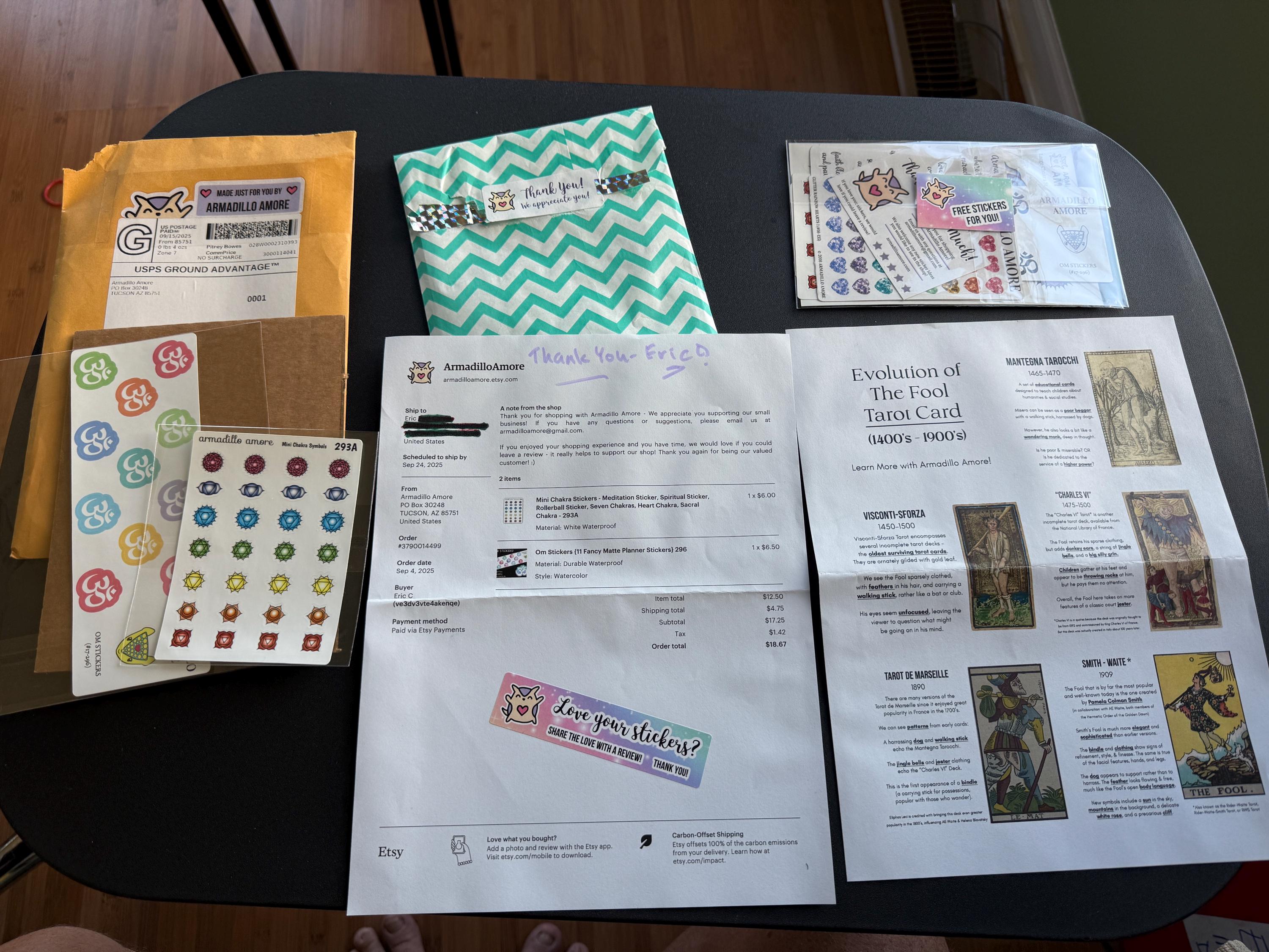 I’ve ordered stickers from many sellers. This is the first time I’ve felt so appreciated from the outside of the package through the layers of gratitude shown me inside. Opening this package made me feel loved as a smile stuck to my face. Thank you for your efforts with the care and love you put into this package. I am moved. 💫🕊️🤍😊😎